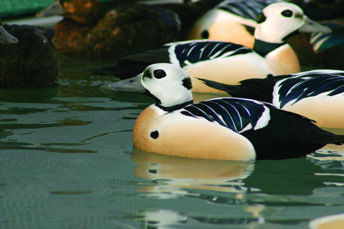 Steller’s eider (Polysticta stelleri) is named in honor of Georg Wilhelm Steller, an 18th-century German botanist, zoologist, and explorer who sailed with Russian Vitus Bering’s expeditions to explore the waters later named after him (Bering Sea). Steller described a remarkable number of plants, birds, and animals on his island journeys. Several species took his name, including Steller’s eider, Steller’s jay, and Steller’s sea eagle. Steller’s eider, a 2-pound sea duck found mostly in Russia, are listed as a threatened species in the United States. The worldwide population is estimated at 150,000 to 200,000 ducks, with only about 100 breeding pairs in Alaska. Legal hunting of Steller’s eiders was stopped in 1991.